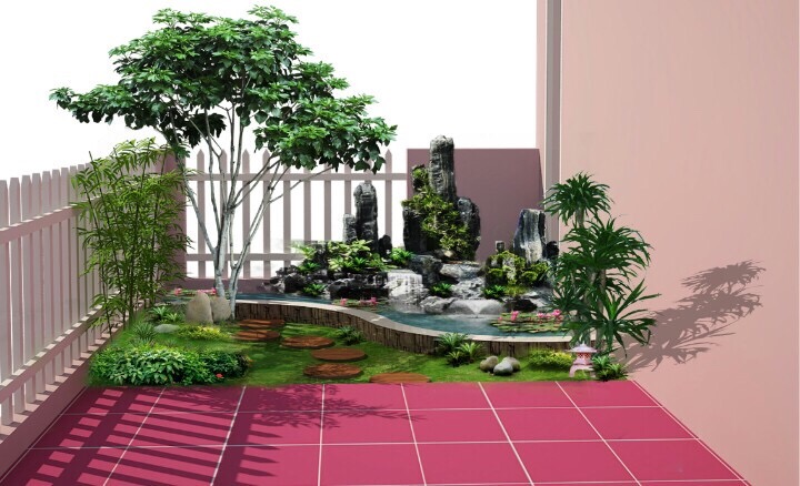 Thiết kế hòn non bộ là sự kết hợp của các yếu tố sơn, thủy, cây...